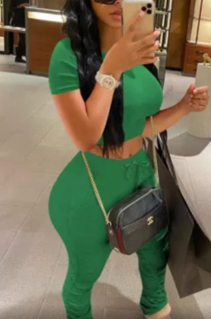 Green Two-Piece Stack/Scrunchie Leg Jogger